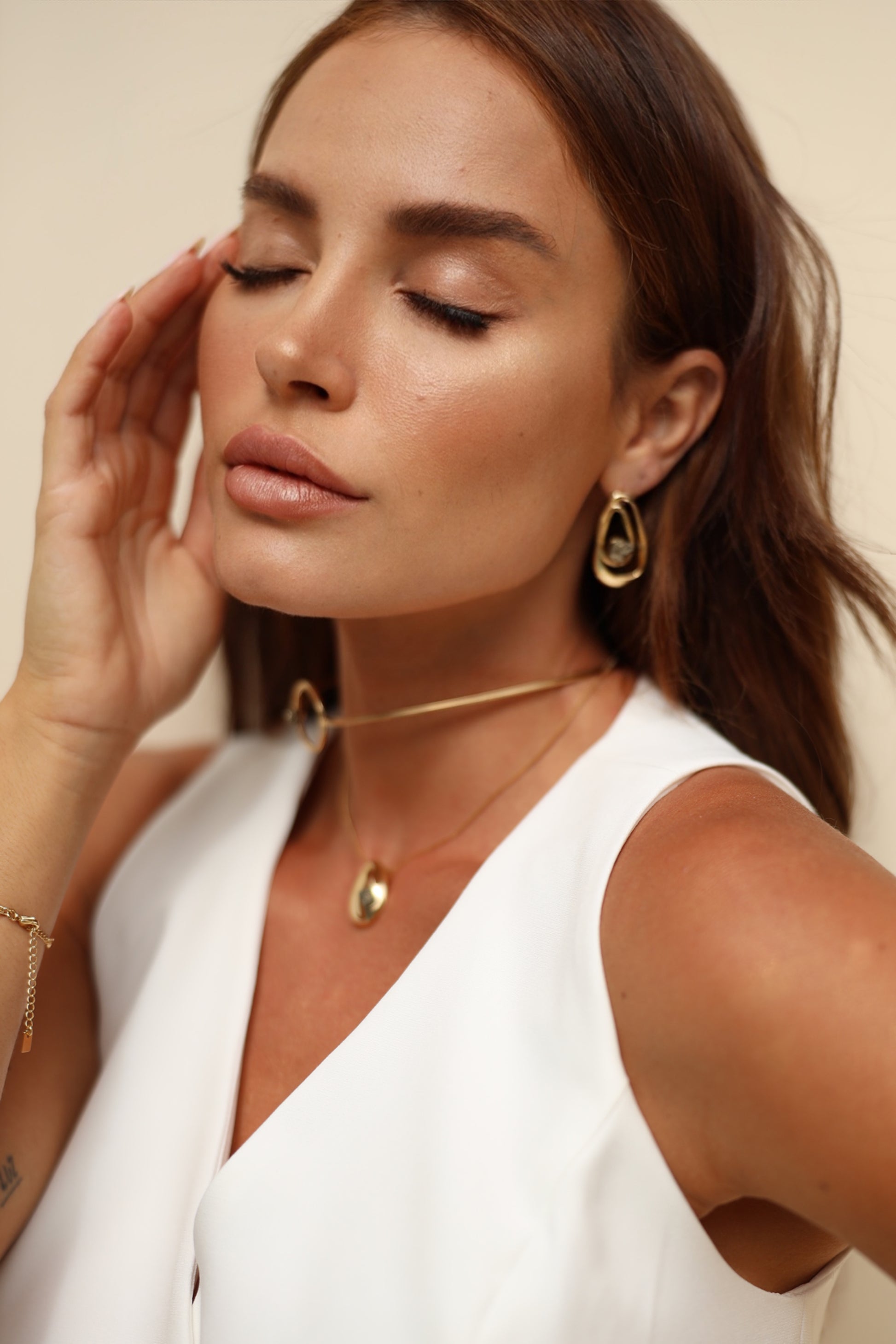 A gold necklace with a single teardrop-shaped pyrite stone! Soft, sacred, and intentional.